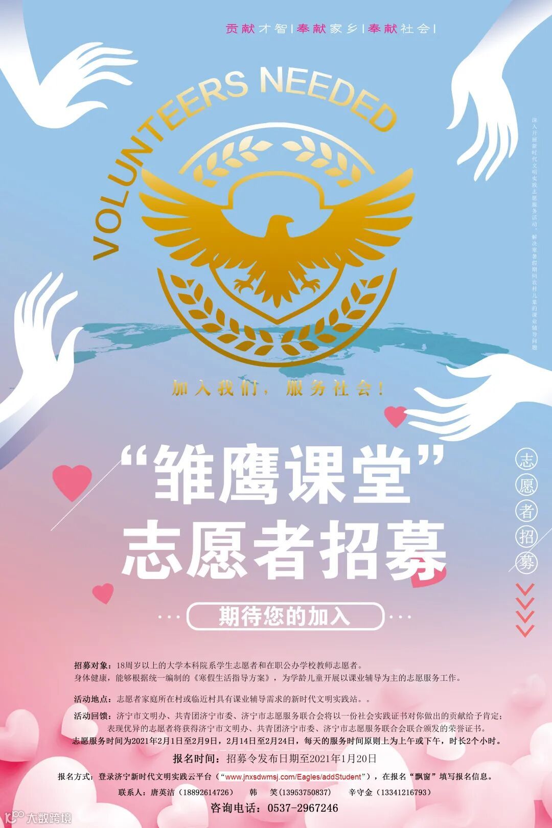 (活动结束后,济宁市文明办、共青团济宁市委、济宁市志愿服务联合会将根据志愿者表现情况以社会实践证明、感谢信和荣誉证书对你做出的贡献给予不同形式的肯定)