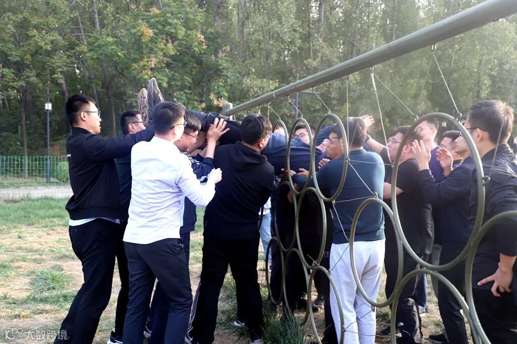 在随后开展的拓展训练中,各队学员们在辅导老师的指导下分工协作、挑战自我,完成了各项训练项目。