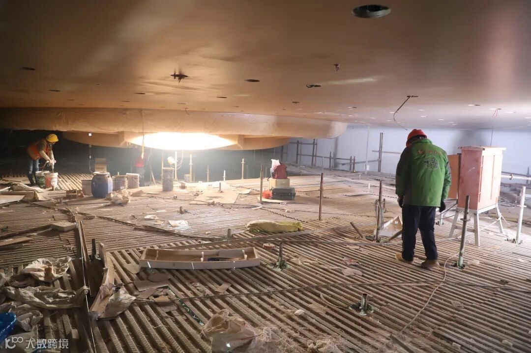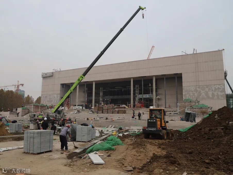 据圣都会议中心建设方项目经理石宝军介绍,目前项目主体已经完成,室外铺装已完成总工程量的80%,室外墙面和整体内装进度均已完成80%以上。