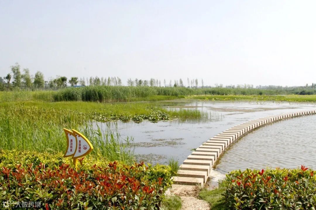 在规划设计中,十里水乡有效利用现状浅滩、深水地势等不同地形建造了不同水深梯度的湿地区,通过土方调整,合理布水,在东区设置为串联的五级表面流人工湿地,增加地表径流停滞时间,经过水生植物的生态净化,达到地表水水质三类标准后,排入洸府河。同时将景观塑造与水质处理有效结合,休闲娱乐与生态治理结合,通过景观性水生植物的合理配植以及复氧等原位修复措施,打造多级生态景观湿地。