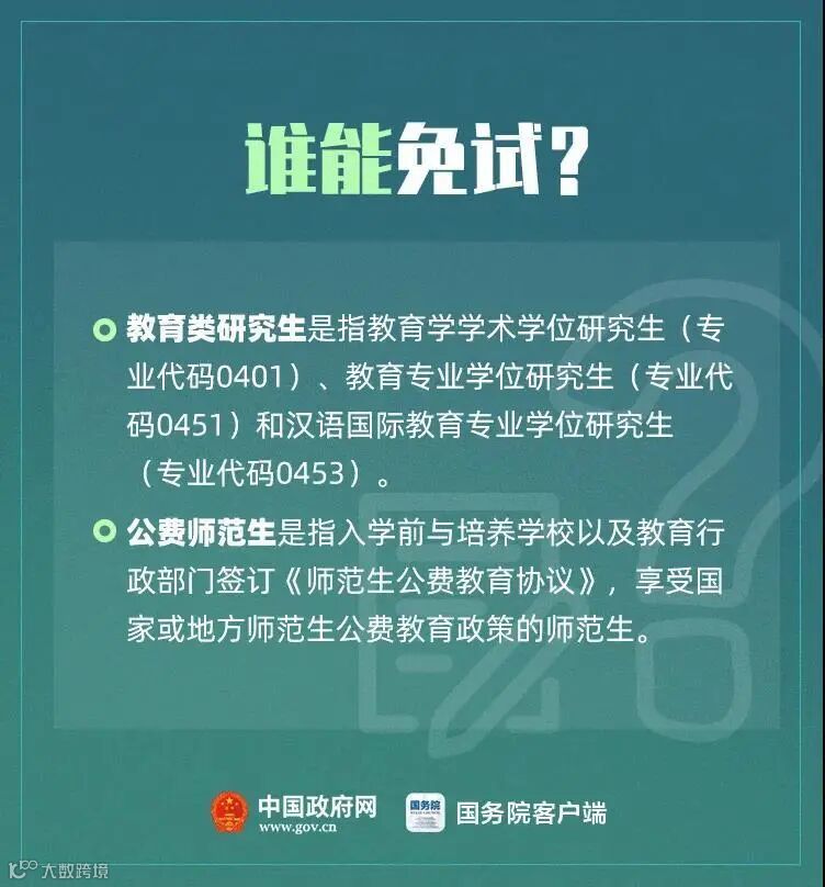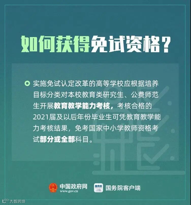 日前,教育部印发《教育类研究生和公费师范生免试认定中小学教师资格改革实施方案》,明确招收教育类研究生、公费师范生的高等学校从2021年起,可参加免试认定改革。