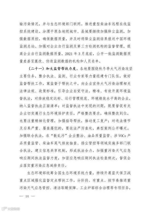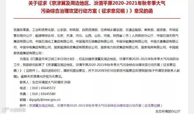 近日,最新版“秋冬季大气污染综合治理攻坚行动方案”发布了。生态环境部印发了关于征求《京津冀及周边地区、汾渭平原2020-2021年秋冬季大气污染综合治理攻坚行动方案(征求意见稿)》。涉及39个行业......