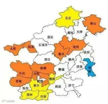 河南省:郑州、开封、安阳、鹤壁、新乡、焦作、濮阳市(含河北省定州、辛集市,河南省济源市)。