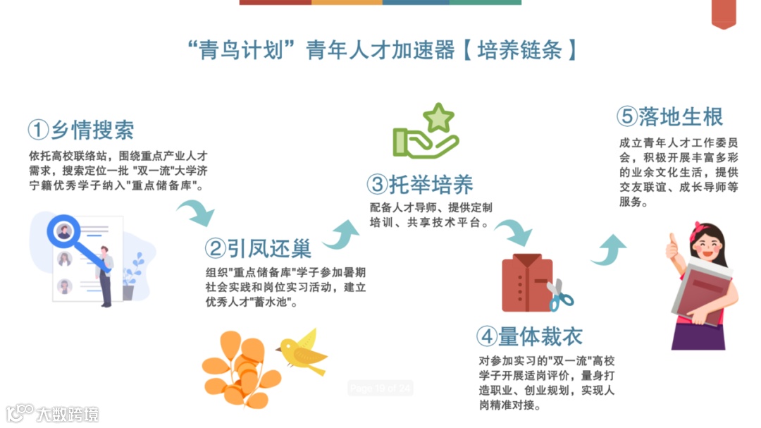 “人材者,求之则愈出,置之则愈匮。”为加固本地人才招引成效,为青年人才成长发展培植沃土、提供环境、搭建平台,“青鸟计划”青年人才加速器主打五步骤联合培养服务链条。