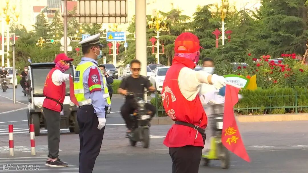 我们的工作每天就是早7:00-9:00、晚上5:00-7:00,我们的主要工作就是劝导市民文明出行,行人要走斑马线,非机动车不压线,不闯红灯。配合交警,让我们的市民出行更文明,让我们的城市变得更美好。