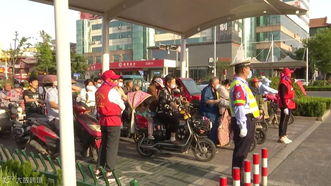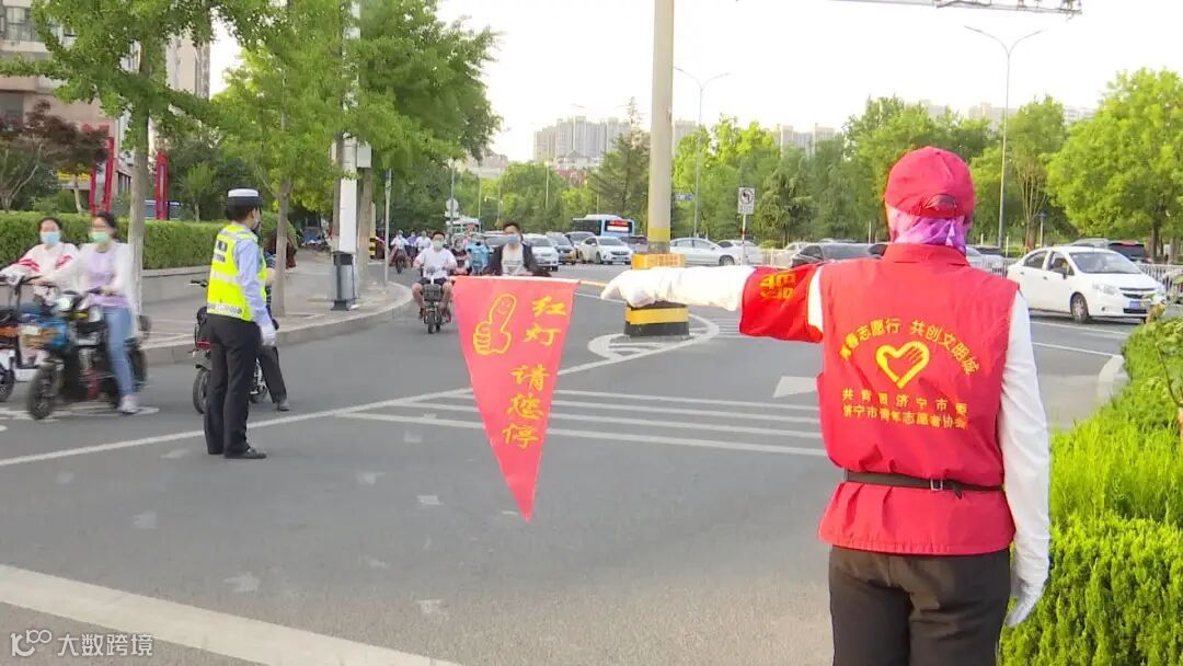 晚上6点半,正值交通晚高峰。在济宁高新区洸河路与琵琶山路交叉路口,几名身穿红马甲,头戴小红帽,手拿小红旗的文明交通劝导员通过规范的动作,对非机动车不文明行为进行劝阻,引导市民遵守交通法规、文明出行。