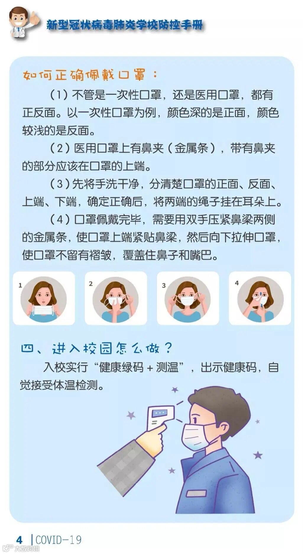 洗手后佩戴口罩出门;建议步行、骑行、乘坐校车或私家车上、下学,不乘坐公共交通工具,途中避免用手触摸交通工具上物品和部位。