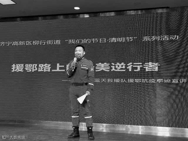济宁蓝天救援队志愿者杨康结合自身抗“疫”期间的亲身经历,作了主题为“援鄂路上的最美逆行者”的宣讲报告,讲述了他和队友们冒着生命危险,昼夜奋战武汉防控一线,分发运送急需物资的动人故事,谱写了一曲人间大爱之歌。