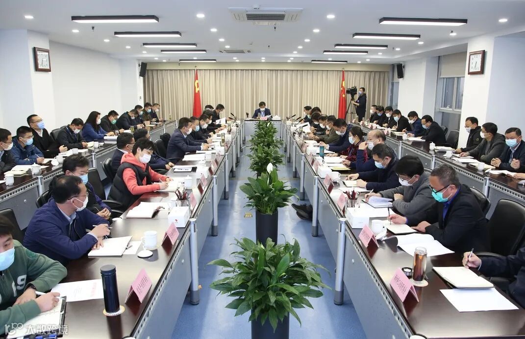 △济宁高新区党工委书记刘章箭主持会议并讲话,区领导楚智华、吴勇、蔡新国、赵鲁、孟凡璋,区直各相关单位、街道、区属国有企业参加。