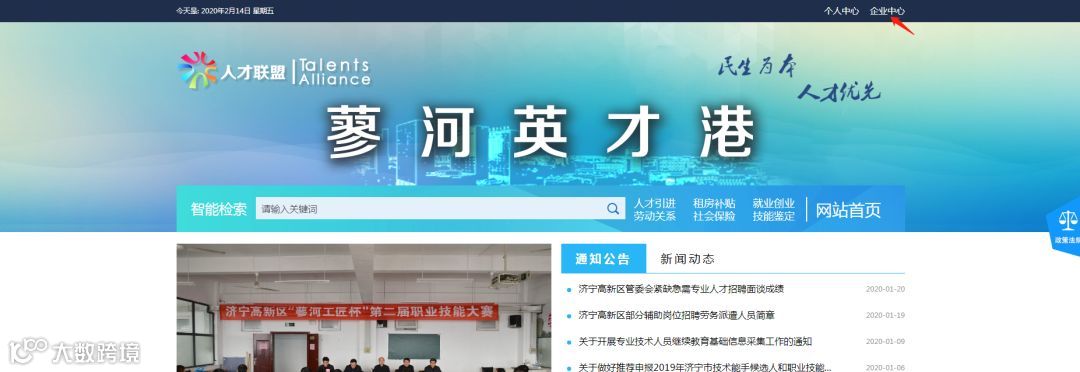 如果您是企业,请点击右上角“企业中心”注册/登录