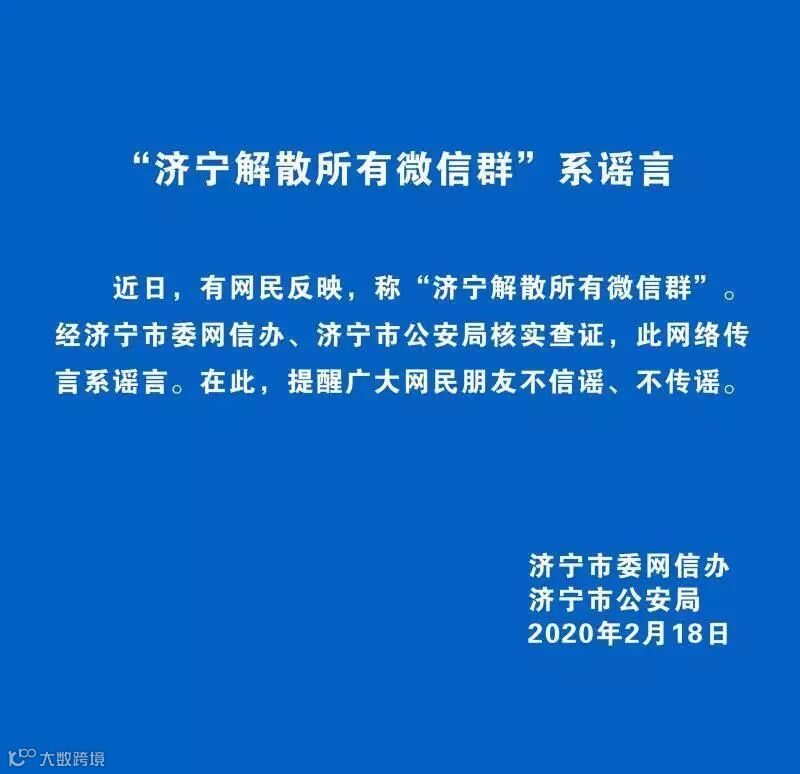 "济宁解散所有微信群"系谣言
