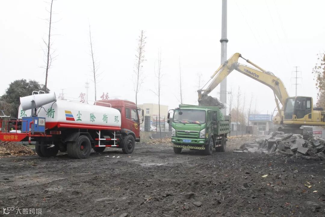 在施工现场,小编看到挖掘机、运输车辆正紧张有序地作业。