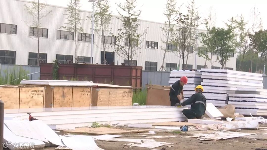 现在咱这个项目进行的钢结构的封闭,墙板施工同时进行咱里边板墙基础施工。其地面硬化施工,预计是25天的工期时间到八月底能进行投产使用。