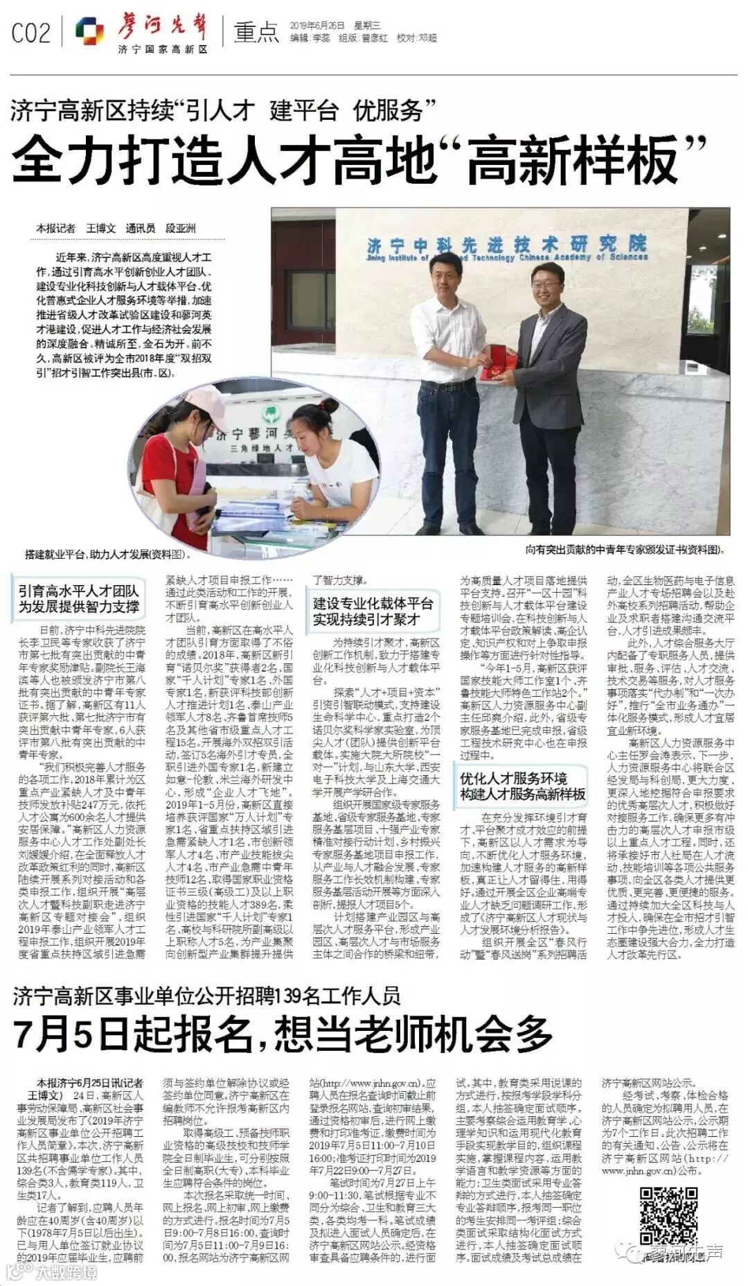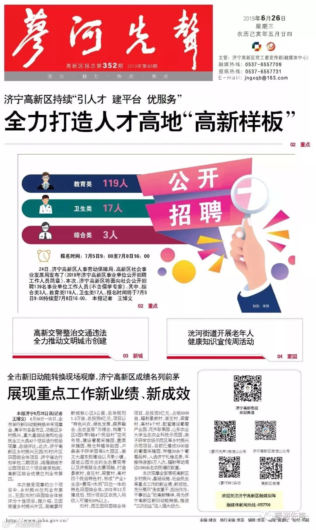 济宁高新区事业单位公开招聘139名工作人员 7月5日起报名,想当老师机会多 |