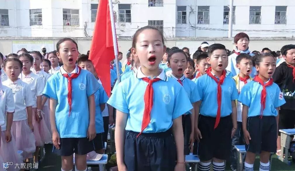 全体队员齐唱《中国少年先锋队队歌》,嘹亮的歌声在校园回荡。新队员们一张张稚嫩上小脸上透露出骄傲和自豪。