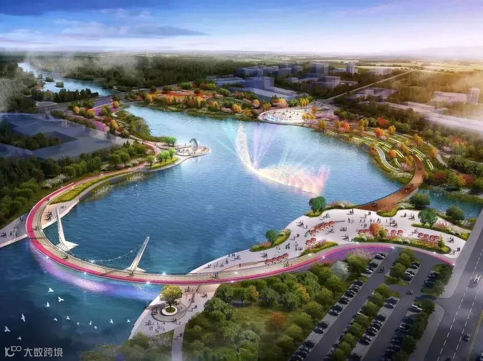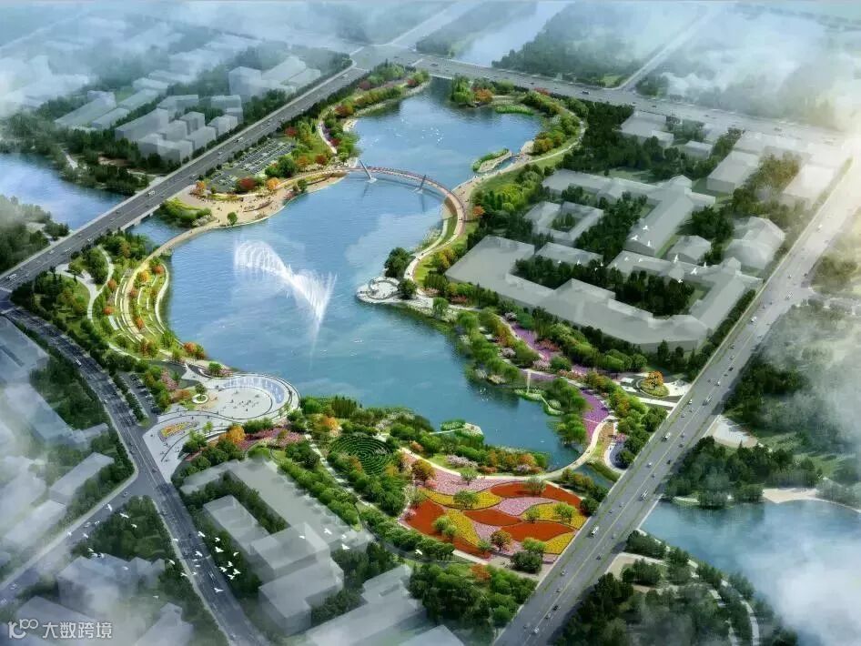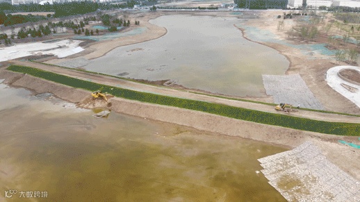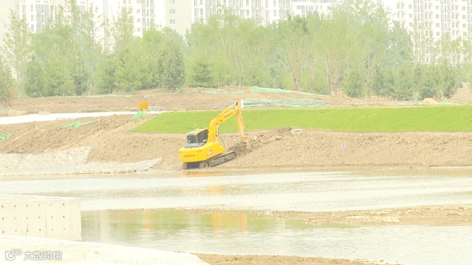 目前鸿雁湖已完成土方开挖及外运,驳岸整形已基本完成,园建景观、绿化种植正加快推进。