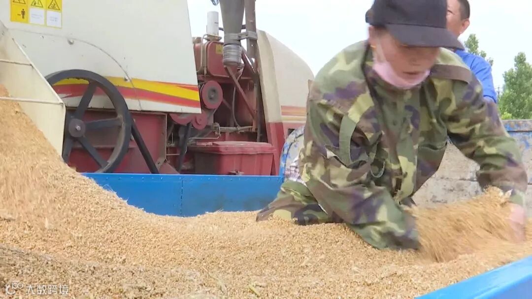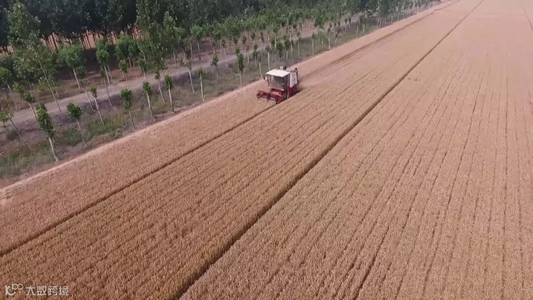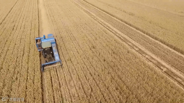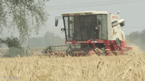 金色的麦浪中,大型联合收割机发出轰鸣声,不一会,金黄的麦粒就被装进车中,而粉碎后的麦糠和秸秆则实行还田,为下季庄稼提供养分。