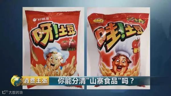 在河北农村集市的一家5.5元休闲食品零售商店里,记者看到了许多傍名牌的情况。比如好丽友生产了一款名叫“呀!土豆”薯条,而市场上就出现了一款“哇!土豆”薯条,包装简直难分彼此。