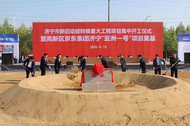 4月19日,济宁市2018年新旧动能转换重大工程项目集中开工仪式在高新区举行,高新区京东集团济宁“亚洲一号”项目开工奠基,为全区新旧动能转换注入强大动力。