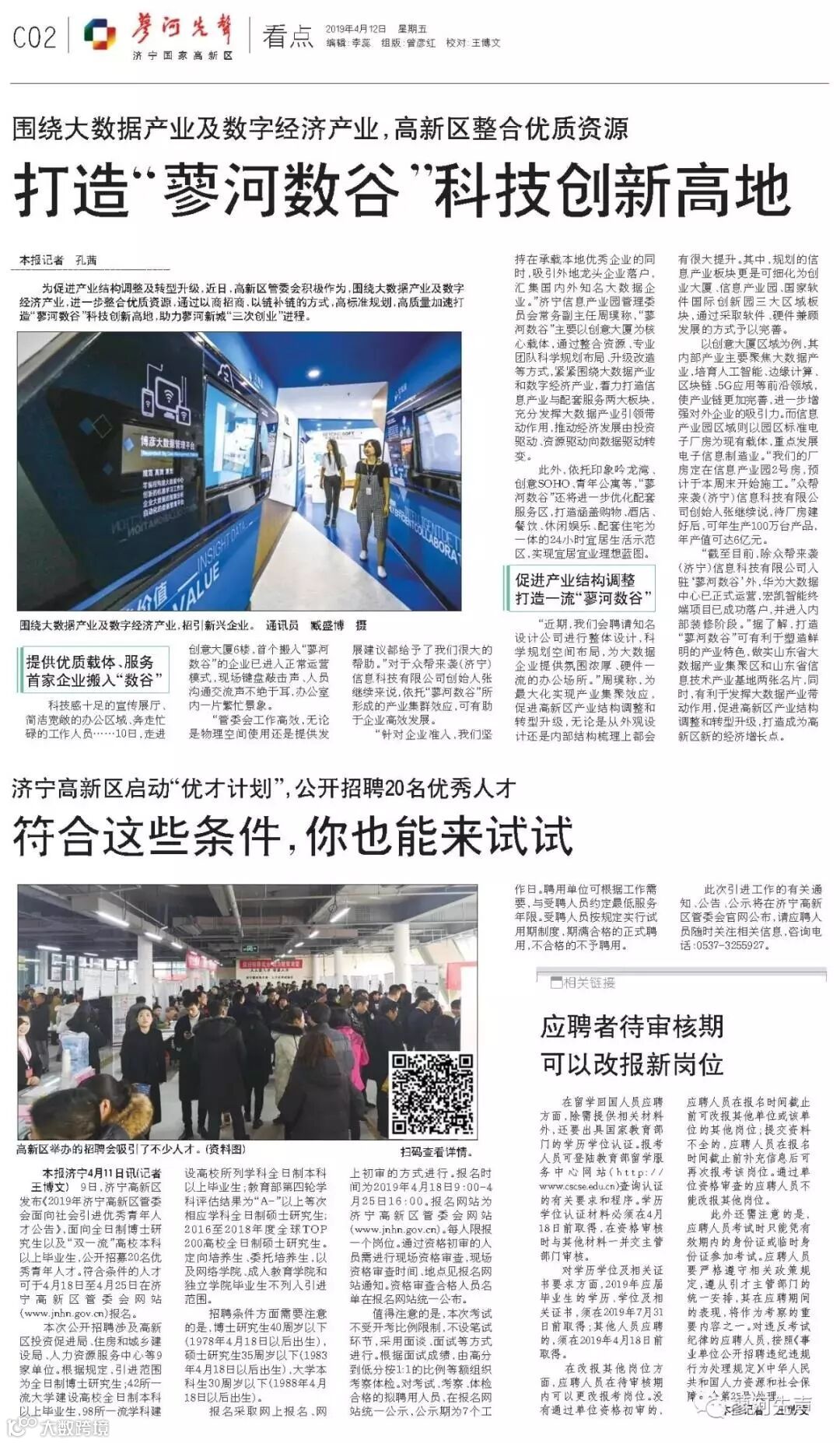 济宁高新区启动“优才计划”,公开招聘20名优秀人才 符合这些条件,你也能来试试 |
