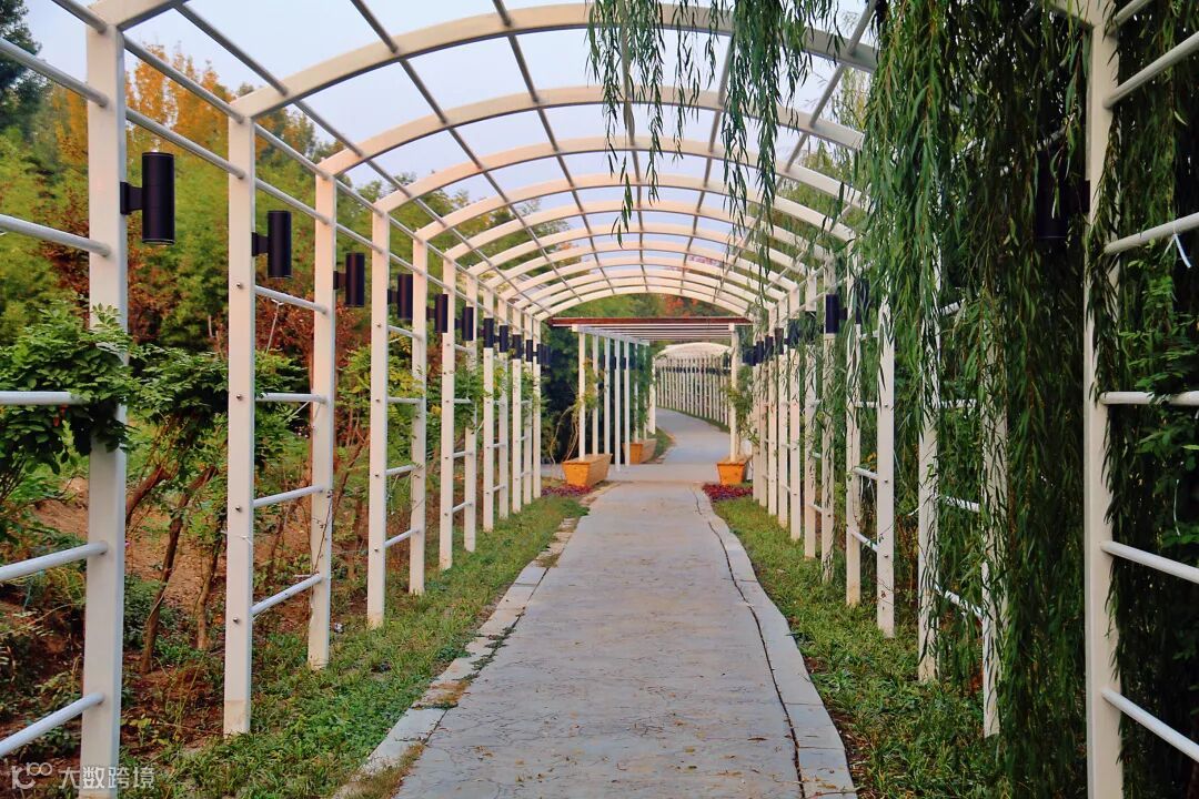 据了解,这是济宁高新区2018年为美化市容环境,提升市民宜居品质打造的新建绿化工程之一——花境长廊。长廊全长200米,高3米,宽3米,可供市民游玩、游憩所用,穿梭廊中,犹如进入花园一般。花境长廊,顾名思义,沿长廊布置花境,在栽植花木选择上,多以攀缘植物为主,让其攀缘生,与廊架相融合,烘托出廊架疏朗、空透、灵动的特质。长廊美与花草美融为一体,虽由人作,宛自天开。为了便于行人晚间漫步,长廊两侧配置了造型奇特的灯饰,让长廊再多出一份灯光之美,达到仰视、俯视以及远观、近观等多角度优质观赏的效果。