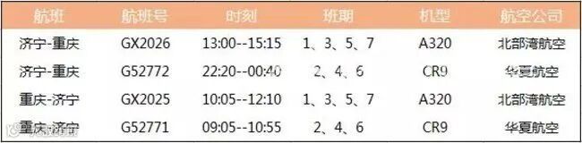 8月1日起,济宁曲阜机场航班更加优化,济宁往返重庆由每周二、四、六加密至每天一班,想要暑期去重庆玩耍的小伙伴们可以结伴出行了,开航前三班还将推出399元特价机票。