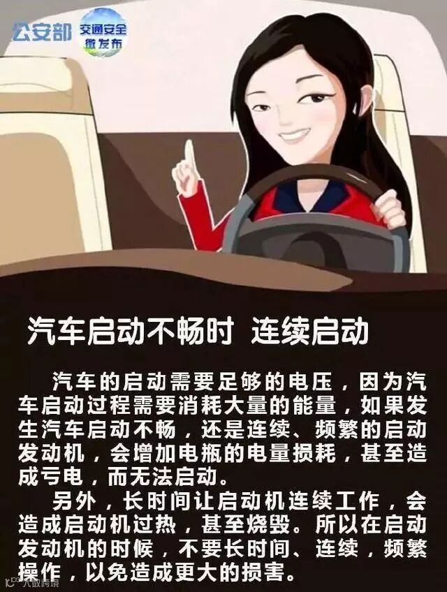 汽车启动不畅时,连续启动,