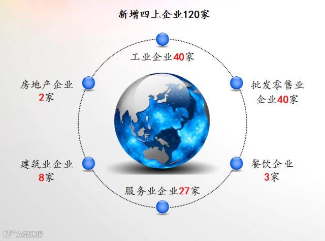 去年全区共新增四上企业120家,其中工业企业40家、批发零售业企业40家、餐饮企业3家、服务业企业27家、建筑业企业8家、房地产企业2家。