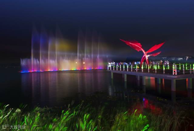 同时,公园采用的生态驳岸利于植物的生长繁育,水面及岸边种植香蒲、芦苇、千屈菜、大花秋葵、再力花、荷花、睡莲等水生植物,既有美化景观、净化水质的作用,还可防止下雨冲刷堤岸,是海绵城市建设的重要组成部分。