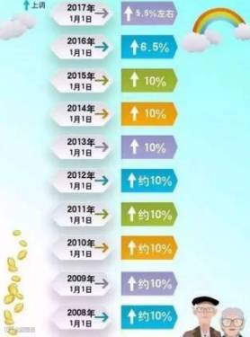 退休(职)人员按照本人2016年12月领取的统筹内月基本养老金为基数,按2.3%的比例增加基本养老金。