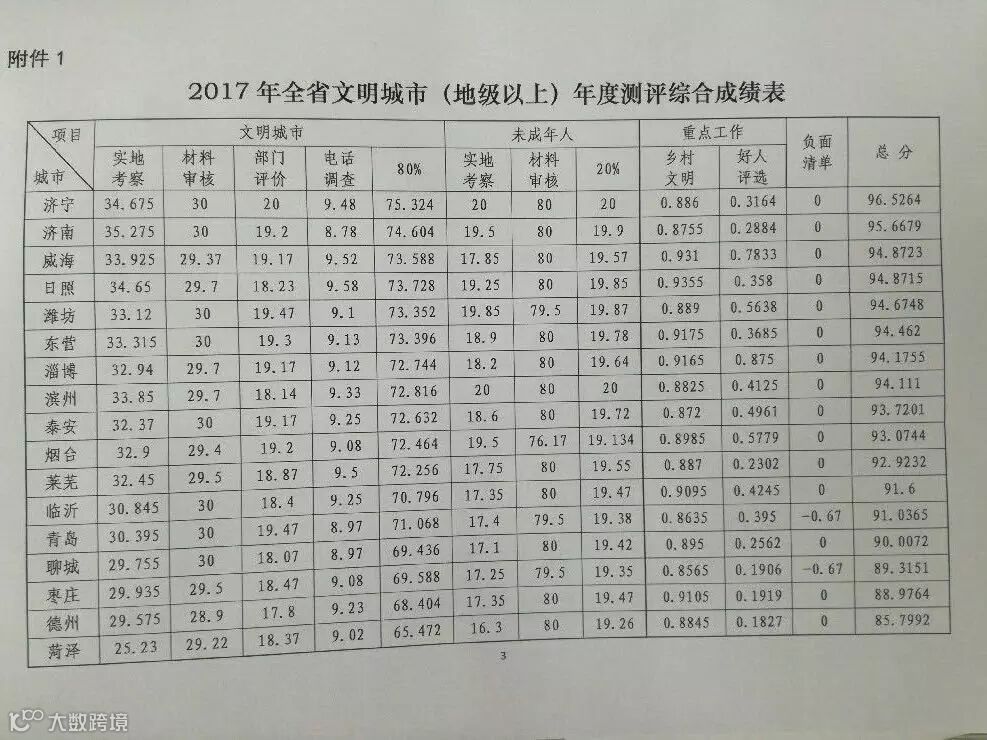 济宁以总分96.5264分排在第一位!