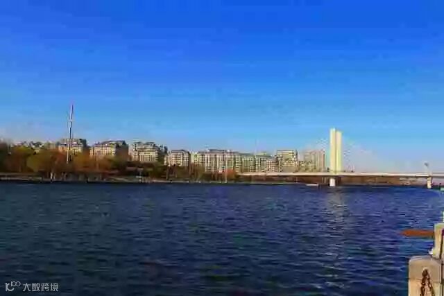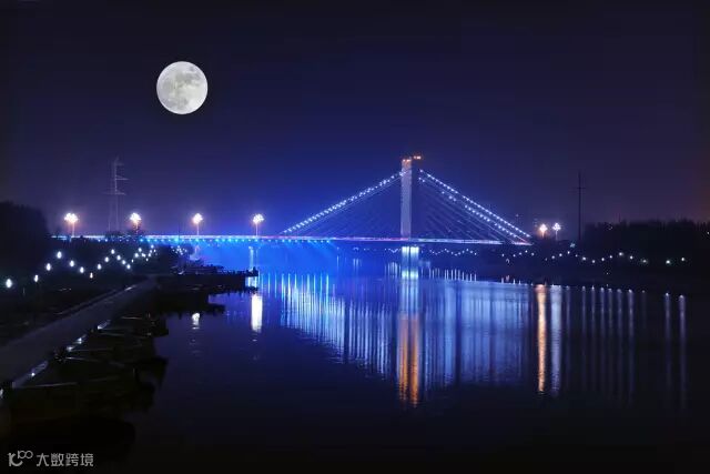 每当夜晚,河两边的灯光,大桥上的灯光,两岸一排排造型各异的路灯灯光,摆布成不同的图案,交相辉映,令人目不暇接,一派迷人景象。