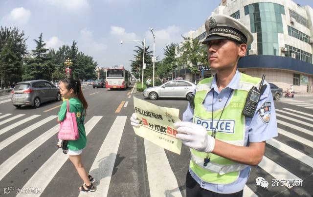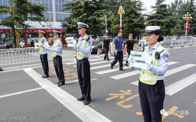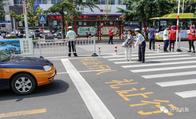 济宁高新区交警大队开展礼让斑马线整治行动,尽管烈日炎炎,但为了行人的出行安全和提高驾驶员的安全责任意识,他们依然坚守在一线,站在路边面向车流,提醒着过往司机礼让行人。