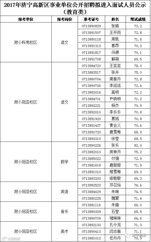高新区事业单位公开招聘笔试成绩查询