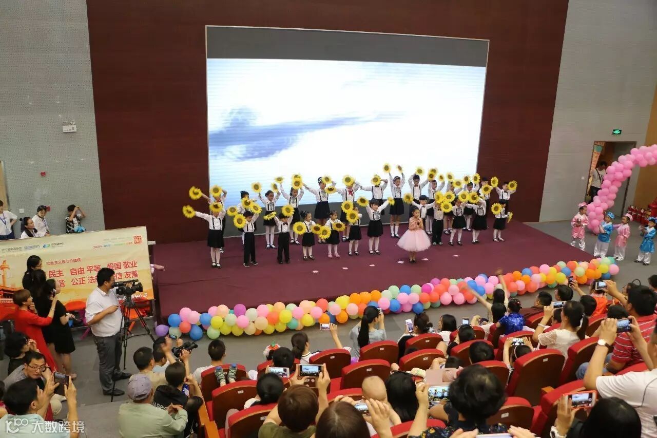 汇报演出分为歌舞类节目、话剧类节目和语言类节目。在演出一开始,图书馆的工作人员就向台下观看演出的观众们进行了创城知识科普,随后小演员们上台进行社会主义核心价值观宣誓。