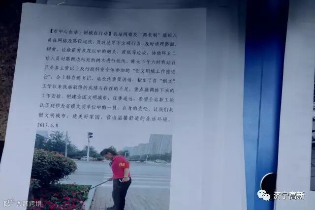 他们是来自济宁中心血站的文明劝导员,据分管负责人介绍,中心血站每天派出2名工作人员到菱花南路路段进行检查督导,出资金对地面、路面、墙面进行整治修缮、粉刷,发现问题及时向柳行街道办事处的分管同志反映,劝阻发生在公共场所的吸烟、乱丢垃圾、不遵守交通规则等一些不文明行为,值班人员每天撰写工作日志,记录发现的问题,追踪落实需要整改的工作。
