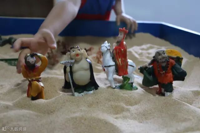 青少年自由选择沙具,自由摆放在沙箱中的任何一个角落,没有对错好坏之分,咨询师在一旁是一个陪伴者的角色,给青少年一个安全、舒适的心理环境,这份安全和自由就像一个婴儿在母亲子宫里那样包容与舒适,何老师介绍道,沙盘游戏本身就是对来访青少年心理的一个引导和陪伴。