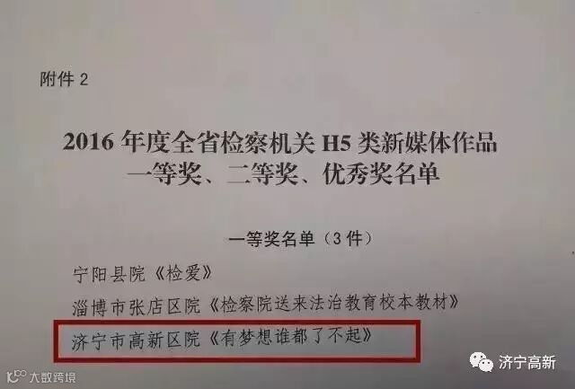 近日,2016年度全省检察机关新媒体原创作品评选活动结果揭晓。高新区检察院微信原创作品《有梦想谁都了不起》荣获“2016年度全省检察机关H5类新媒体作品一等奖”。