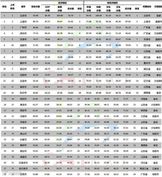 软经济指标的加入更是倡导城市要“做优”,由榜单可以看出,部分城市软经济指标发展滞后。例如,单纯以经济指标衡量,深圳市列第4位,但其非经济指标则排到第20位。