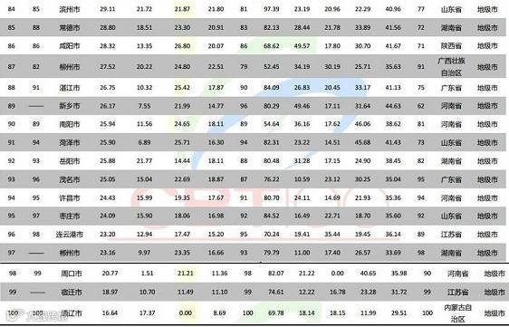中国百强城市排行榜