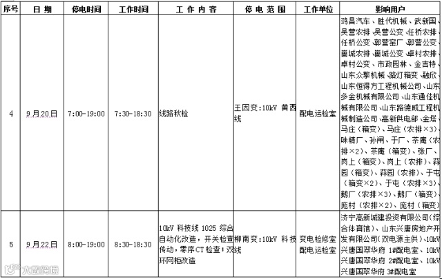 【通知】9月份济宁这些地方要停电,大家有备无患!