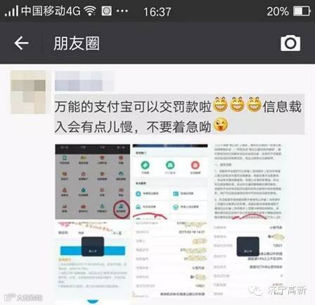 近日,小编从高新区交警支队违章处理中心获悉,从现在开始,市民可通过支付宝缴纳违法罚款,不用到银行排长队了,而支付宝缴纳罚款的步骤说明也已经在微信朋友圈里流传开来。