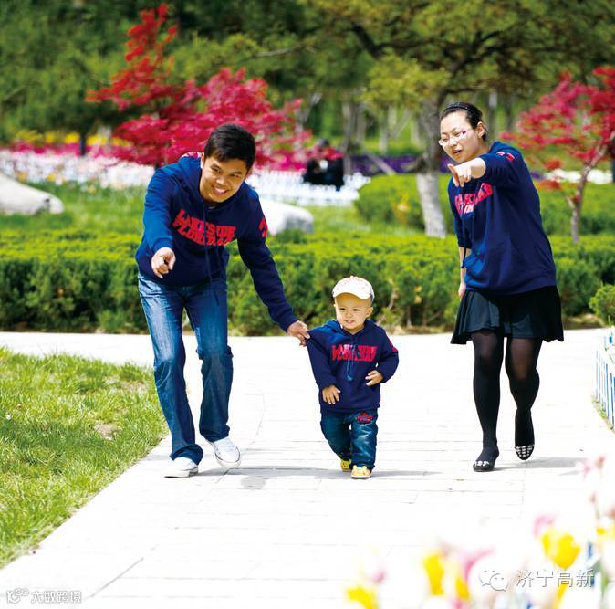 孩子愉快奔跑,父母开展笑颜