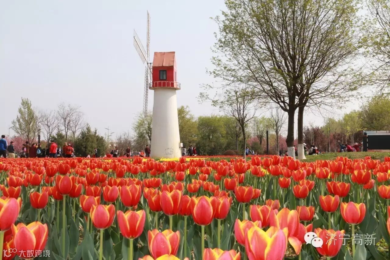 河畔之上,花红柳绿