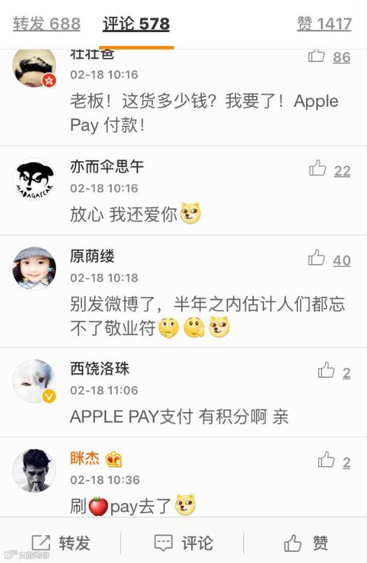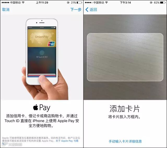 用Apple pay时就像是在刷信用卡,它号称“发卡行是怎样规定的,用Apple Pay就享受怎样的待遇。”