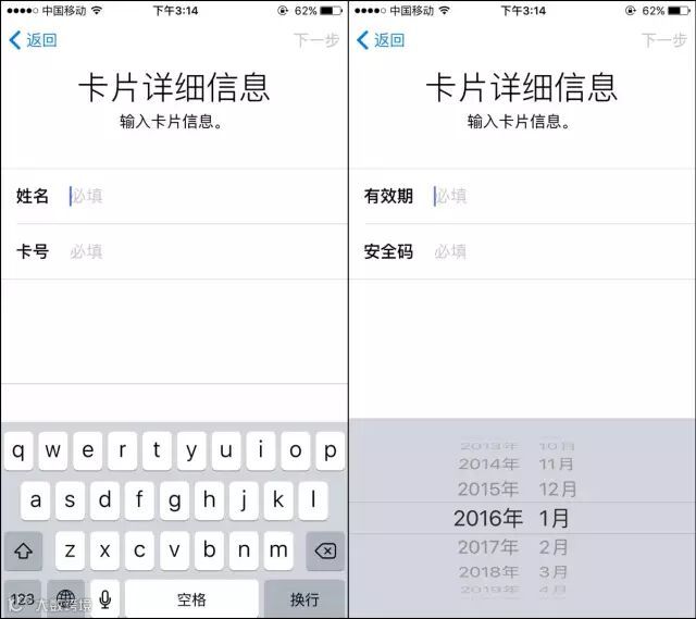 ▼输入姓名及信用卡信息,进行设置,完成后点击下一步▼