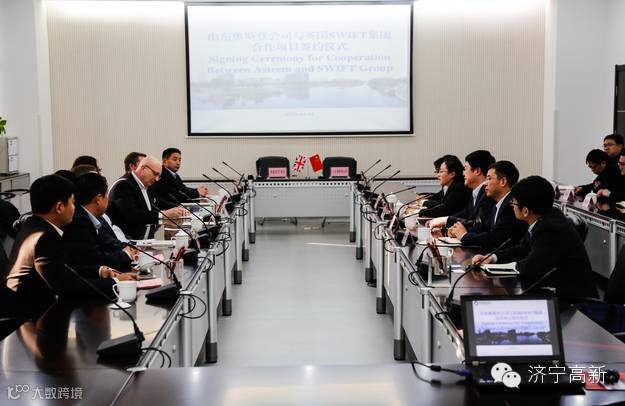 3月1日下午,山东奥斯登公司与英国SWIFT集团合作项目签约仪式在高新区产学研基地举行。