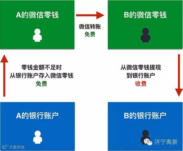 也就是说,你把银行的钱整到微信支付里可以爱怎么玩就怎么玩,但是想要再放回银行卡里就要掏钱。
