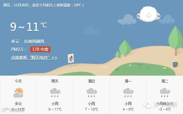 再来看看咱们济宁的天气,这周末估计能出行的可能性不大,因为有明显的降雨过程,所以周末暖暖的我在家里度过也是不错的选择,特别主义的是下周就开始开启零下的模式了,说不准还能等来冬天的初雪哦,还是提前准备好啤酒和炸鸡,这样比较靠谱哦。最后提醒北鼻们及时增添衣物保暖,防止受寒感冒。祝大家周末快乐~