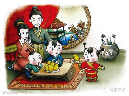 孔融小时候聪明好学,才思敏捷,巧言妙答,大家都夸他是奇童。4岁时,他已能背诵许多诗赋,并且懂得礼节,父母亲非常喜爱他。